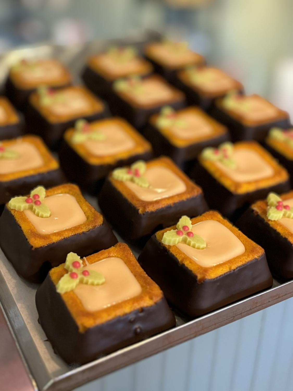 En smarrig chokladdoppad saffransruta fylld med apelsinfyllning.